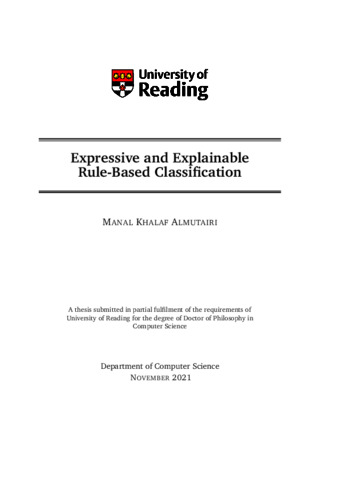 Almutairi, M. K. (2022) Expressive and explainable rule-based classification. PhD thesis, University of Reading. doi: 10.48683/1926.00114127