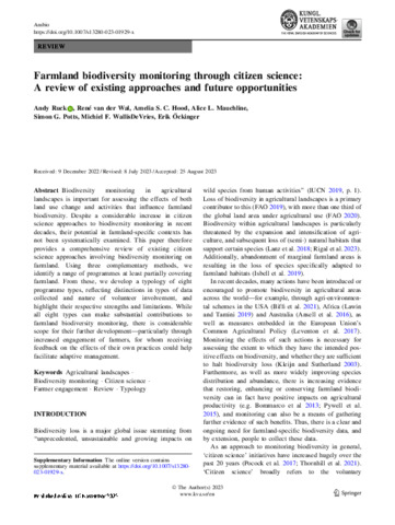 Farmland biodiversity monitoring through citizen science: a review of existing approaches and future opportunities