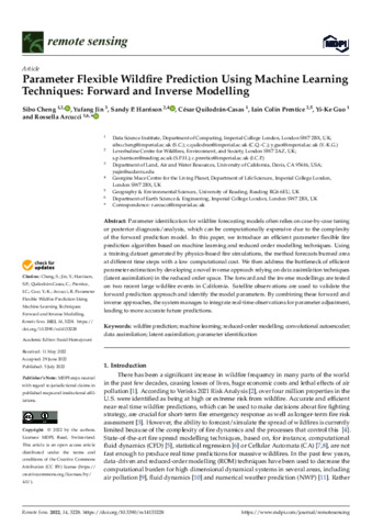 Cheng, S. orcid id iconORCID: https://orcid.org/0000-0002-8707-2589, Jin, Y., Harrison, S. P. orcid id iconORCID: https://orcid.org/0000-0001-5687-1903, Quilodrán-Casas, C., Prentice, I. C., Guo, Y.-K. and Arcucci, R. orcid id iconORCID: https://orcid.org/0000-0002-9471-0585 (2022) Parameter flexible wildfire prediction using machine learning techniques: forward and inverse modelling. Remote Sensing, 14 (13). 3228. ISSN 2072-4292 doi: 10.3390/rs14133228