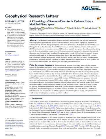 A climatology of summer-time Arctic cyclones using a modified phase space.