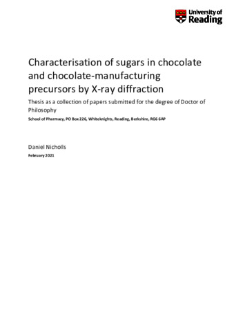 Nicholls, D. (2022) Characterisation of sugars in chocolate and chocolate-manufacturing precursors by X-ray diffraction. PhD thesis, University of Reading. doi: 10.48683/1926.00114200