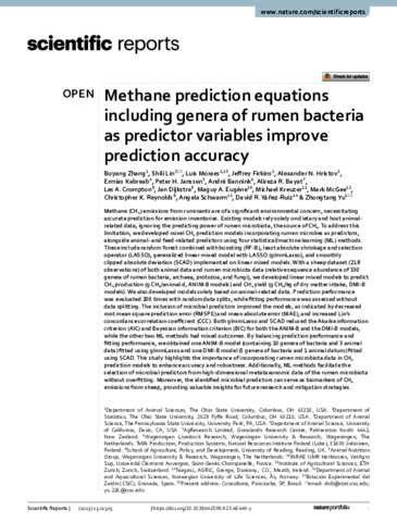 Methane prediction equations including genera of rumen bacteria as predictor variables improve prediction accuracy.