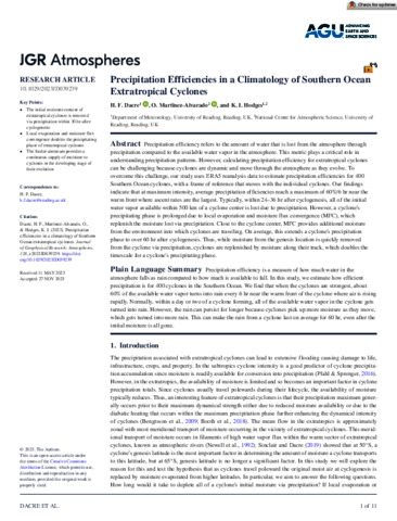 Precipitation efficiencies in a climatology of Southern Ocean extratropical cyclones.