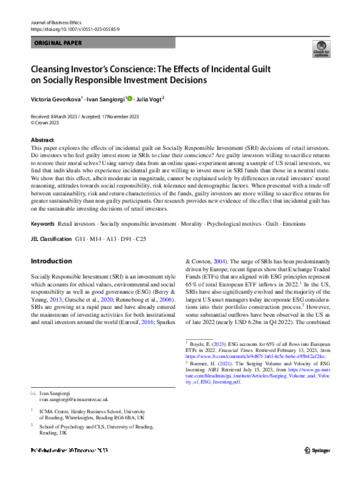 Glac, K. (2009). Understanding socially responsible investing: The effect of decision frames and trade-off options. Journal of Business Ethics, 87(1), 41-55.