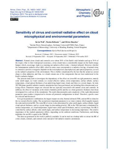 Sensitivity of cirrus and contrail radiative effect on cloud microphysical and environmental parameters.