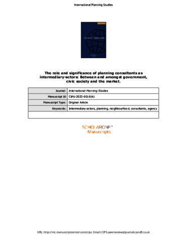 The role and significance of planning consultants as intermediary-actors: between and amongst government, civic society and the market.