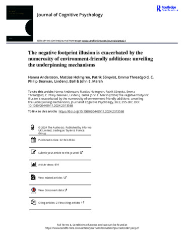 Andersson, H., Holmgren, M., Sörqvist, P., Threadgold, E., Beaman, C. P.