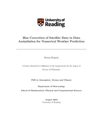 Francis, D. (2023) Bias correction of satellite data in data assimilation for numerical weather prediction. PhD thesis, University of Reading. doi: 10.48683/1926.00114305