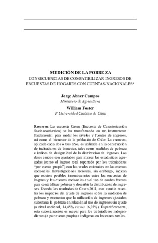 Medición de la pobreza. Consecuencias de compatibilizar ingresos de encuestas de hogares con cuentas nacionales (The consequences for poverty measurement in Chile of adjusting household income from surveys to national accounts).