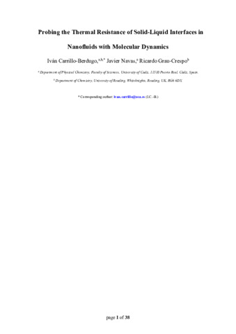 18 L. Xue, P. Keblinski, S. R. Phillpot, S. U.-S. Choi, and J. A. Eastman, "Two Regimes of Thermal Resistance at a Liquid–Solid Interface", J. Chem. Phys. 118, 337-339 (2003).