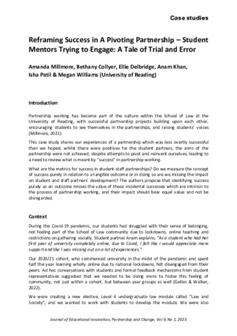 Reframing success in a pivoting partnership – student mentors trying to engage: a tale of trial and error.