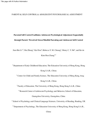 Parental self-control facilitates adolescent psychological adjustment sequentially through parents' perceived stress/mindful parenting and adolescent self-control.