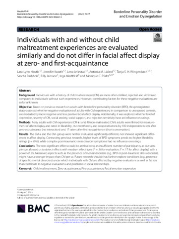 Individuals with and without child maltreatment experiences are evaluated similarly and do not differ in facial affect display at zero- and first-acquaintance.