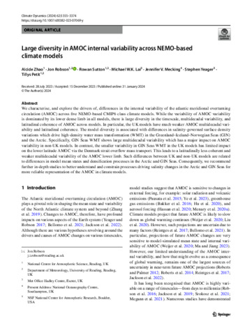 Large diversity in AMOC internal variability across NEMO-based climate models.