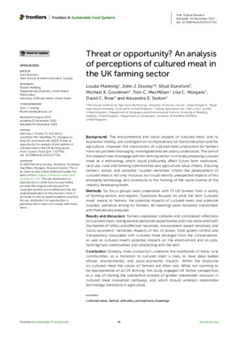 Threat or opportunity? An analysis of perceptions of cultured meat in the UK farming sector.