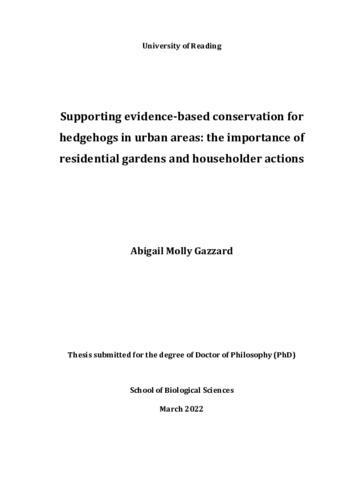 Gazzard, A. M. (2022) Supporting evidence-based conservation for hedgehogs in urban areas: the importance of residential gardens and householder actions. PhD thesis, University of Reading. doi: 10.48683/1926.00114442