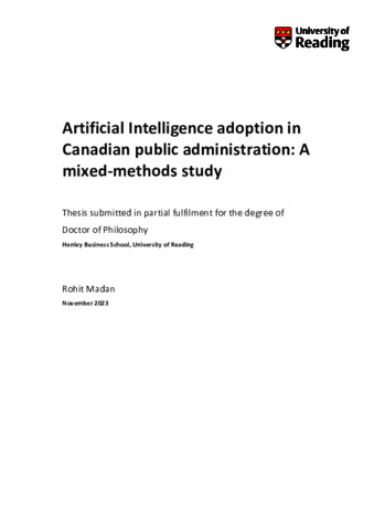 Madan, R. (2023) Artificial Intelligence adoption in Canadian public administration: a mixed-methods study. PhD thesis, University of Reading. doi: 10.48683/1926.00114444