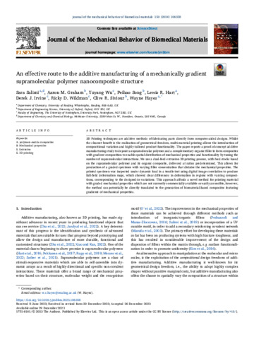 An effective route to the additive manufacturing of a mechanically gradient supramolecular polymer nanocomposite structure.