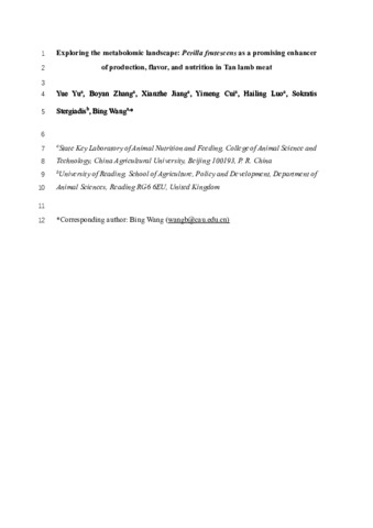 Exploring the metabolomic landscape: Perilla frutescens as a promising enhancer of production, flavor, and nutrition in Tan lamb meat.