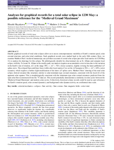 Analyses for graphical records for a total solar eclipse in May 1230: a possible reference for the “Medieval Grand Maximum”.