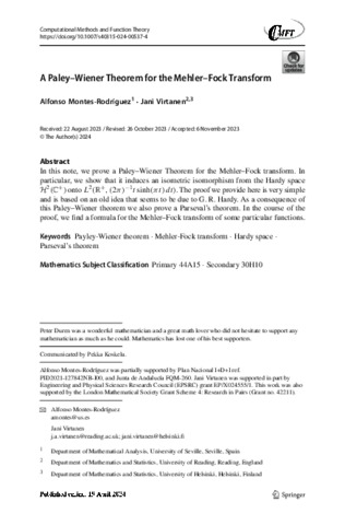 Montes-Rodríguez, A. and Virtanen, J. (2024) A Paley-Wiener theorem for the Mehler-Fock transform. Computional Methods and Function Theory. ISSN 2195-3724 doi: 10.1007/s40315-024-00537-4