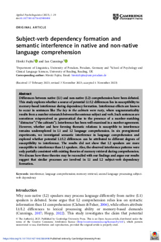 Subject-verb dependency formation and semantic interference in native and non-native language comprehension.