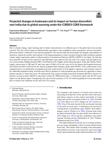 Maharana, P., Kumar, D. orcid id iconORCID: https://orcid.org/0000-0003-2253-4129, Das, S., Tiwari, P. R., Norgate, M. and Raman, V. A. V. (2023) Projected changes in heatwaves and its impact on human discomfort over India due to global warming under the CORDEX-CORE framework. Theoretical and Applied Climatology. ISSN 1434-4483 doi: 10.1007/s00704-023-04788-4