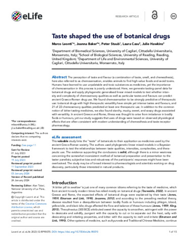 The perception of taste and flavour (a combination of taste, smell and chemesthesis) here also referred to as chemosensation, enables animals to find high-value foods and avoid toxins. Humans have learned to use unpalatable and toxic substances as medicines, yet the importance of chemosensation in this process is poorly understood. Here we generate tasting-panel data for botanical drugs and apply phylogenetic generalised linear mixed models to test whether intensity and complexity of chemosensory qualities as well as particular tastes and flavours can predict ancient Graeco-Roman drug use. We found chemosensation to be strongly predictive of therapeutic use: botanical drugs with high therapeutic versatility have simple yet intense tastes and flavours, and 21 of 22 chemosensory qualities predicted at least one therapeutic use. In addition to the common notion of bitter tasting medicines, we also found starchy, musky, sweet, cooling, and soapy drugs associated with versatility. In ancient Greece and Rome, illness was thought to arise from imbalance in bodily fluids or humours, yet our study suggests that uses of drugs were based on observed physiological effects that are often consistent with modern understanding of chemesthesis and taste receptor pharmacology.
