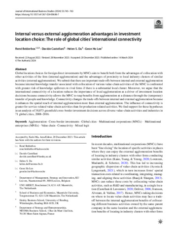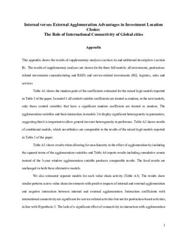 Internal versus external agglomeration advantages in investment location choice: the role of global cities’ international connectivity.