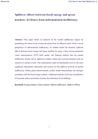 Spillover effects between fossil energy and green markets: evidence from informational inefficiency.