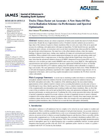 Twelve times faster yet accurate: a new state‐of‐the‐art in radiation schemes via performance and spectral optimization.
