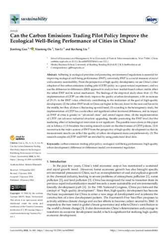 Can the carbon emissions trading pilot policy improve the ecological well-being performance of cities in China?