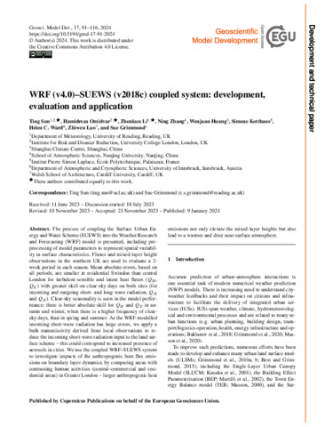 WRF (v4.0)–SUEWS (v2018c) coupled system: development, evaluation and application.