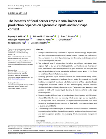 The benefits of floral border crops in smallholder rice production depends on agronomic inputs and landscape context.
