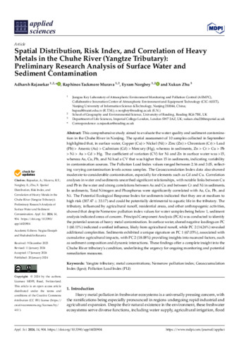 Spatial distribution, risk index, and correlation of heavy metals in the Chuhe River (Yangtze Tributary): preliminary research analysis of surface water and sediment contamination.