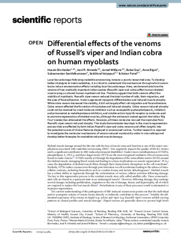 Differential effects of the venoms of Russell’s viper and Indian cobra on human myoblasts.