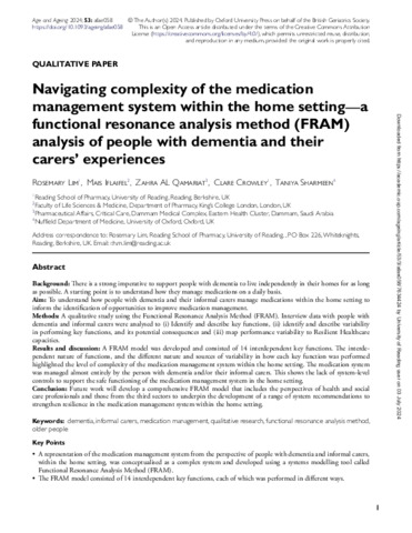Navigating complexity of the medication management system within the home setting - A Functional Resonance Analysis Method (FRAM) analysis of people with dementia and their carers’ experiences.