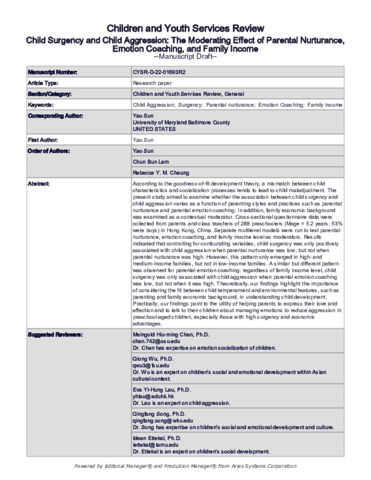 Child surgency and child aggression: the moderating effect of parental nurturance, emotion coaching, and family income.