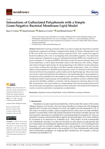 Interactions of galloylated polyphenols with a simple gram-negative bacterial membrane lipid model.