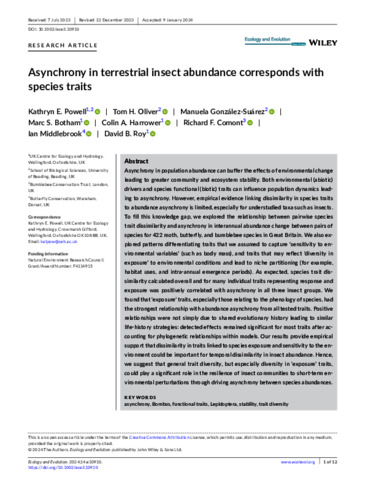 Asynchrony in terrestrial insect abundance corresponds with species traits.