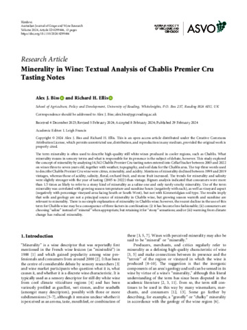 • [17] Rodrigues, H., Valentin, D., Otheguy, M., & Ballester, J. (2022). How to make a mineral wine ? Relationship between production type in the Chablis vineyard and the search for a mineral wine style. Oeno One, 56, 29–45. https://doi.org/10.20870/oeno-one.2022.56.2.4856
