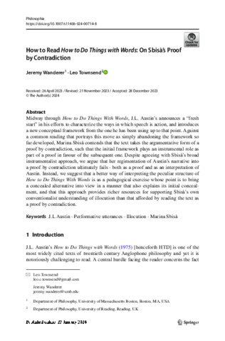 How to read how to do things with words: on Sbisà’s proof by contradiction.