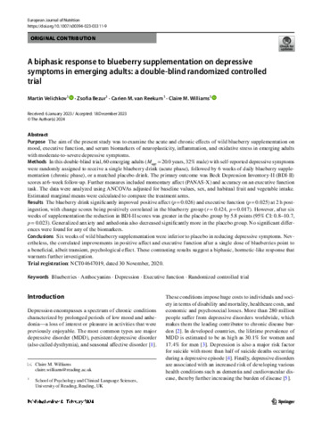 A biphasic response to blueberry supplementation on depressive symptoms in emerging adults: a double-blind randomized controlled trial.