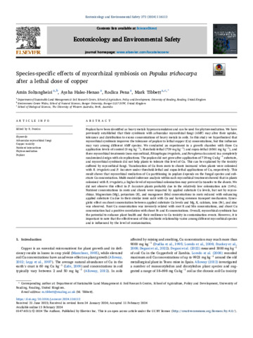 Species-specific effects of mycorrhizal symbiosis on Populus trichocarpa after a lethal dose of copper.