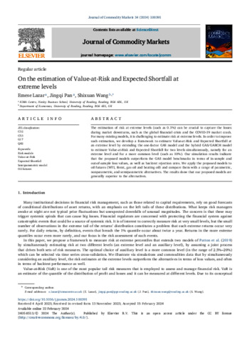 Lazar, E. orcid id iconORCID: https://orcid.org/0000-0002-8761-0754, Pan, J. and Wang, S. orcid id iconORCID: https://orcid.org/0000-0003-2113-5521 (2024) On the estimation of Value-at-Risk and Expected Shortfall at extreme levels. Journal of Commodity Markets, 34. 100391. ISSN 2405-8513 doi: 10.1016/j.jcomm.2024.100391