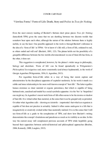 ‘Viewless forms’/ Form-of-life: death, story and poiēsis in Texts for Nothing
