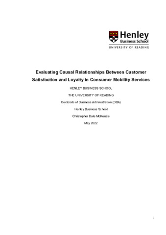 McKenzie, C. D. (2022) Evaluating causal relationships between customer satisfaction and loyalty in consumer mobility services. DBA thesis, University of Reading. doi: 10.48683/1926.00115294