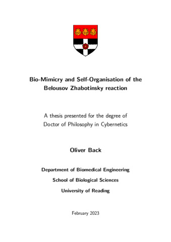Back, O. (2024) Bio-mimicry and self-organisation of the Belousov Zhabotinsky reaction. PhD thesis, University of Reading. doi: 10.48683/1926.00115298