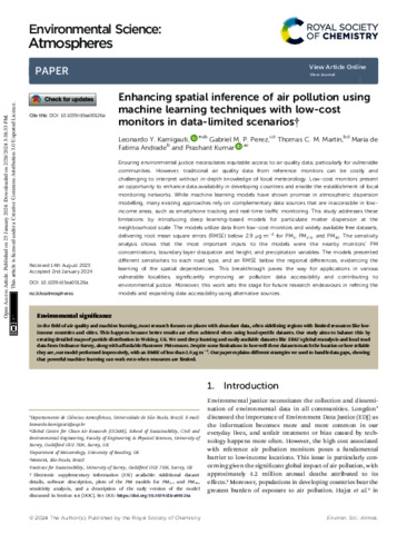 Kamigauti, L. Y. orcid id iconORCID: https://orcid.org/0000-0001-5421-8193, Perez, G. M. P., Martin, T. C. M., de Fatima Andrade, M. and Kumar, P. orcid id iconORCID: https://orcid.org/0000-0002-2462-4411 (2024) Enhancing spatial inference of air pollution using machine learning techniques with low-cost monitors in data-limited scenarios. Environmental Science: Atmospheres. ISSN 2634-3606 doi: 10.1039/d3ea00126a