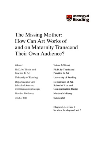 Mullaney, M. (2022) The missing mother: how can art works of and on maternity transcend their own audience? PhD thesis, University of Reading. doi: 10.48683/1926.00115540